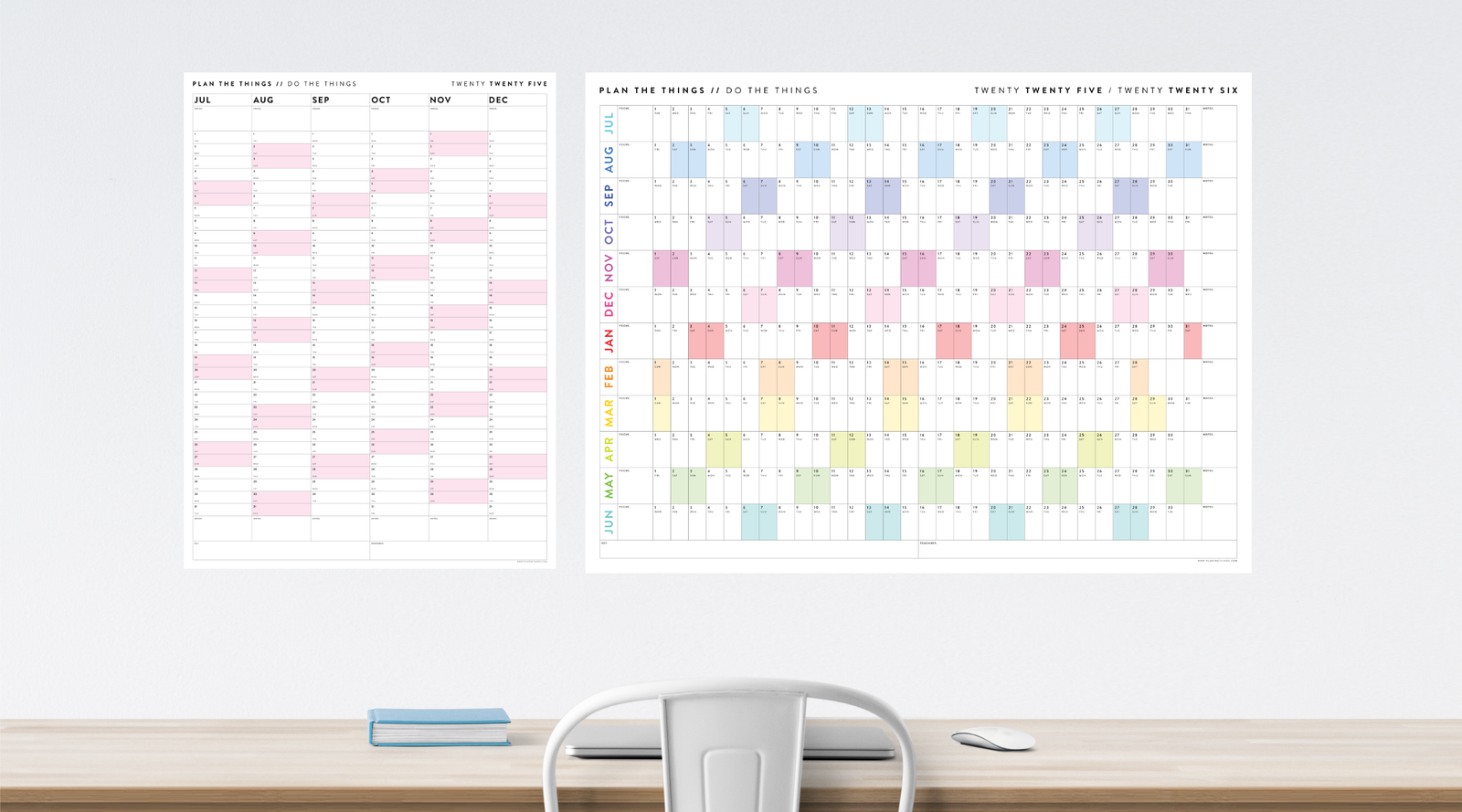 If you want a forever calendar that you can use year after year, or if you're not a fan of waiting for conventional start dates, check out our undated giant wall calendars.