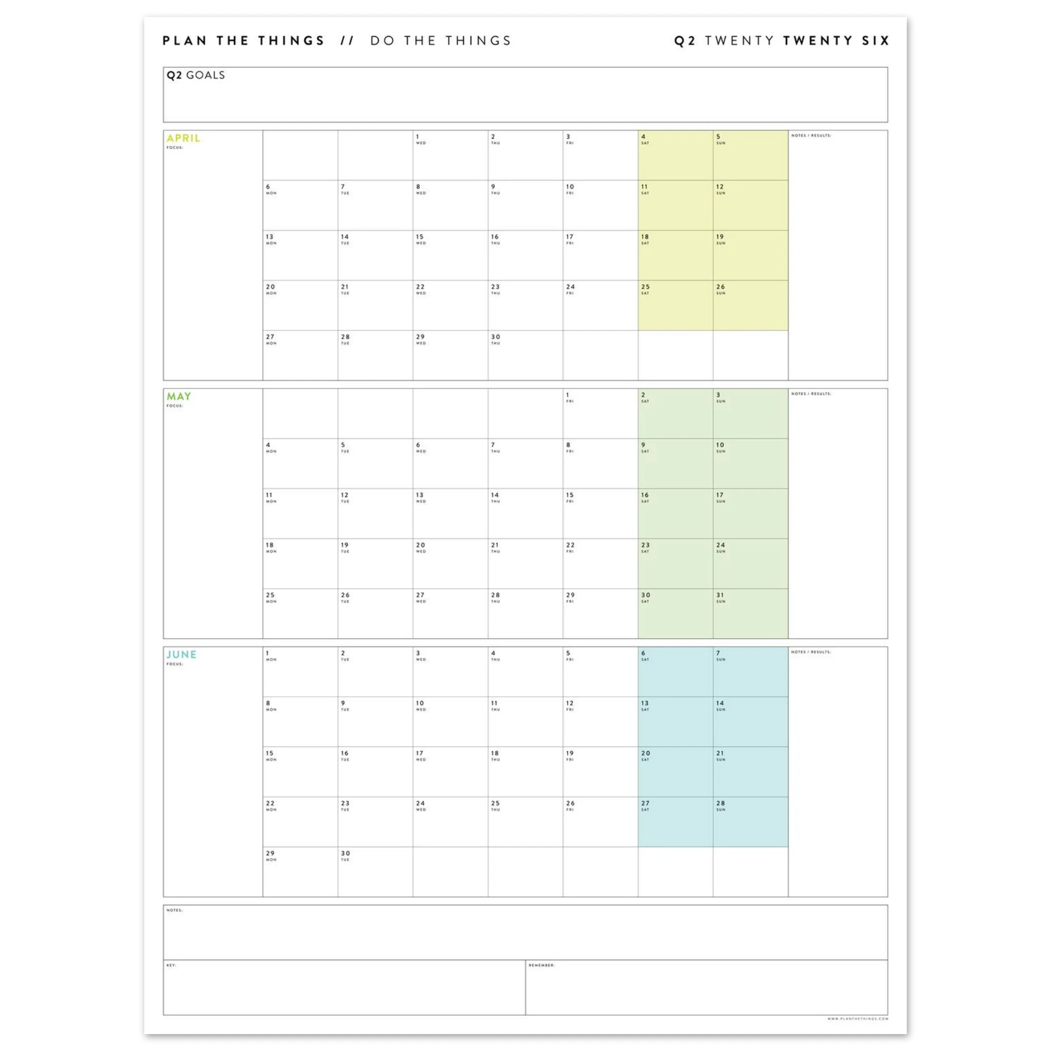 Printed on crisp, heavy-weight matte paper, this Q2 wall planner (April - June 2026) comes in three sizes so you can plan your quarter, beautifully. For each product sold, one tree is planted.