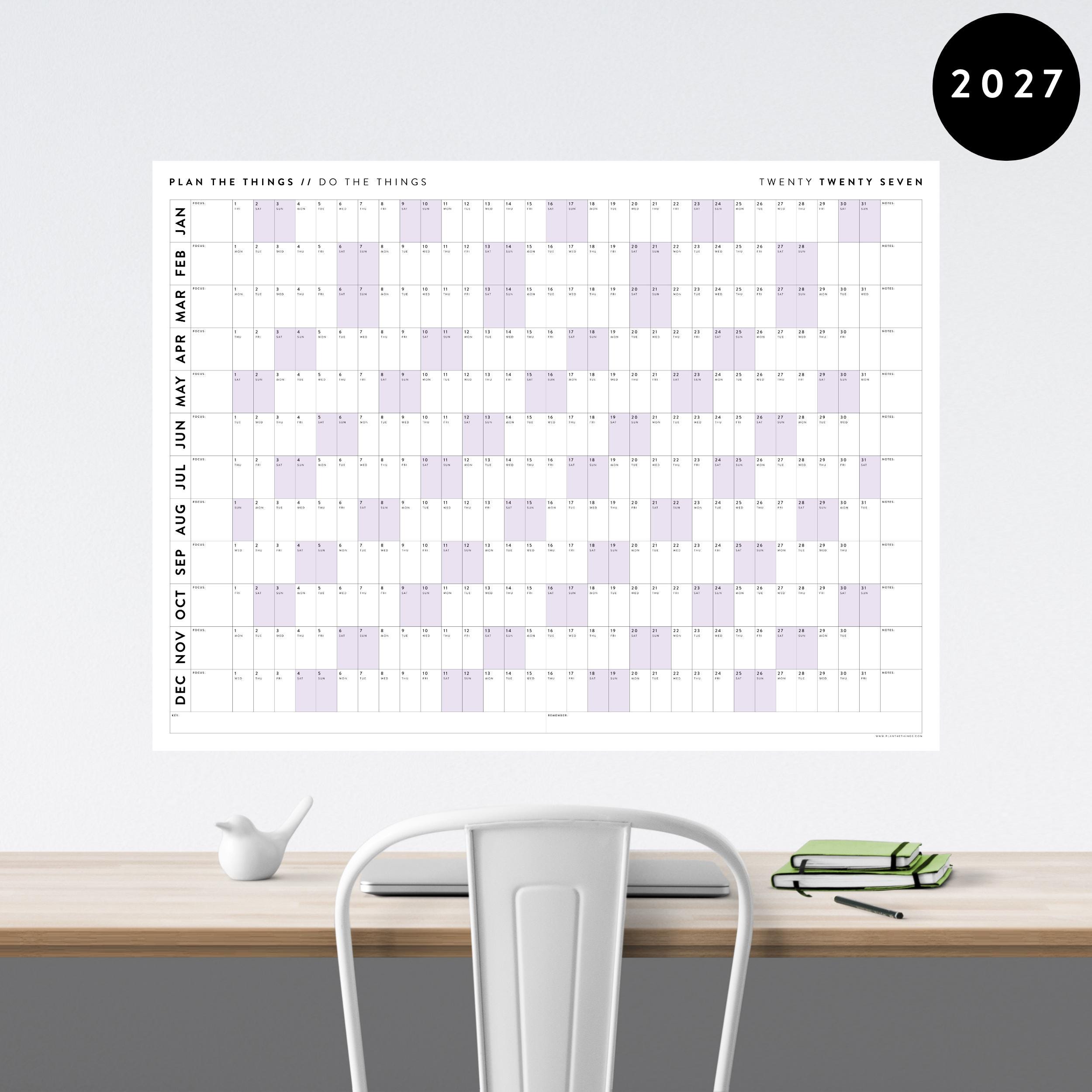 Want to get planning today? Purchase this instant digital download version of our 2027 annual wall calendar today and print it yourself up to 48" x 36". This super-functional, minimalist planner is designed so that so that you see everything you have going on in for the year in one (long) glance.