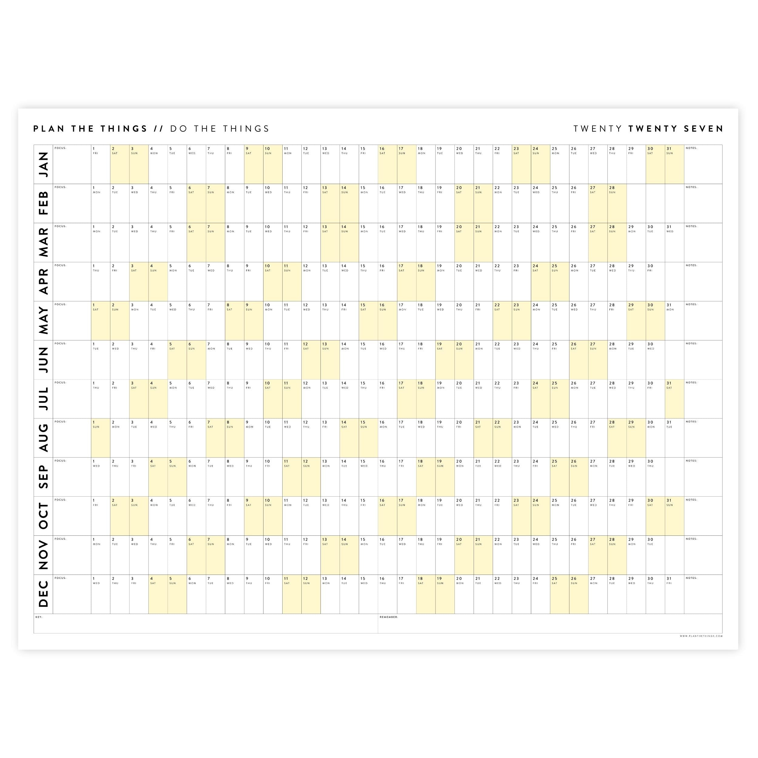 Want to get planning today? Purchase this instant digital download version of our 2027 annual wall calendar today and print it yourself up to 48" x 36". This super-functional, minimalist planner is designed so that so that you see everything you have going on in for the year in one (long) glance.